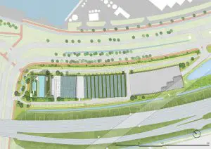 Het landschapsplan voor de ruimte op en rondom de gebouwen is ontworpen door De Urbanisten. Rijke beplanting vormt een habitat voor insecten, vogels, amfibieën en kleine zoogdieren. Regenwater wordt op het terrein geborgen en gebruikt voor de bewatering.