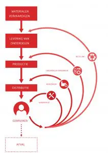 ‘Met een dosis gezond verstand kom je al een heel eind. De bouw is een lineair proces en wat we moeten gaan doen, is de materiaalcirkels sluiten. Dat kan door een gebouw zodanig te ontwerpen dat je alle materialen ervan kunt hergebruiken. Als dat niet gaat, ontwerp dan zo dat een gebouw op onderdelen herbruikbaar is. Als dat niet gaat, bekijk je of kleine onderdelen als de rubbers, het glas of de profielen van kozijnen herbruikbaar zijn. Pas als je dat gehad hebt, ga je bouwmaterialen recyclen. Deze laatste variant komt neer op materiaal ‘kapot’ maken tot bijvoorbeeld granulaat om er iets nieuws van te maken en dat staat op de laagste sport van circulair handelen.’