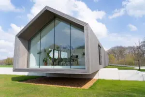 Met zijn zelfgebouwde abstracte schuurwoning heeft architect Dennis Weerink van Reitsema & Partners de Reynaers Projectprijs 2021 gewonnen. Gevelbouwer OWK realiseerde de aluminium gevelelementen waaronder de opvallende schuifpui van 4,5 meter hoog.