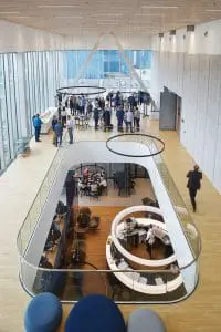 Een noordelijke en een zuidelijk hoofdentree geven directe toegang tot de centrale hal of experience centre in het hart van het gebouw. Rondom de hal liggen horecavoorzieningen zoals de espressobar, het campusrestaurant en een grand café. Allemaal beschikken ze over goed op de zon georiënteerde royale terrassen. De onderste verdieping bevat daarnaast een meeting area met daar omheen een vergadercentrum. Op de tweede verdieping ligt een multifunctioneel auditorium, gekoppeld aan een hoge foyer met uitzicht over de campus. Op de tweede en derde verdieping liggen alle onderwijs- en onderzoeksruimten van Universiteit Maastricht en CHILL en op de bovenste verdiepingen bevindt zich de activiteit gerelateerde kantooromgeving van het DSM Innovation Center. Onder maaiveld liggen een multifunctionele sportzaal en een bezoekersparkeergarage.