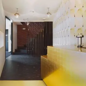 Het hotel als katalysator van stedelijke revitalisatie, dat zie je niet vaak. Hotels zijn bij uitstek het domein van ondernemers en die houden niet van risico’s. Pas als een wijk goed op de rails staat, wordt er geïnvesteerd in toerisme. Maar Modez is een initiatief van woningcorporatie Volkshuisvesting Arnhem, dat voor deze opmerkelijke zakentransactie speciale compensatie kreeg. Al werd een veiligheidsclausule ingebouwd. ‘Het casco is feitelijk zo ontworpen dat het hotel met minimale ingrepen kan worden getransformeerd tot studentenhuisvesting’, zegt Addy de Boer van Nexit Architecten. Dit Arnhemse bureau ontwierp de nieuwbouw voor dit hotel. ‘Naast een instrument voor de citymarketing van Arnhem Modestad en een economische impuls aan de wijk moet het hotel ook fungeren als een ontmoetingsplek. ‘Op de begane grond is een eigentijds café en een restaurant. Het plein voor het hotel is opnieuw ingericht en biedt plaats aan een ruim terras.’