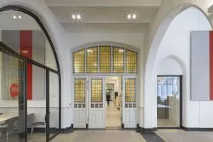 Voor de restauratie van het interieur is zorgvuldig gekeken naar wat oorspronkelijk en wat later toegevoegd is. Een gedeelte van de binnenwanden is in een latere periode geplaatst. Deze konden verwijderd worden waardoor er grotere ruimtes ontstonden en het gebouw ruimtelijker is geworden. De verlaagde plafonds zijn weggehaald zodat de originele troggewelven zichtbaar werden en de originele terrazzo vloeren zijn zichtbaar gemaakt. Op diverse plekken in het gebouw zijn doorbraken en scheidingen gemaakt, afgewerkt met stalen kozijnen.