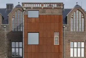 De herontwikkeling was gericht op maximaal behoud van het exterieur en doelgerichte strategische ingrepen in het interieur. Aan het exterieur is zeer terughoudend ingegrepen om een maximale aansluiting met de historische stedelijke omgeving te behouden. Aan de westgevel zijn drie bestaande ramen naar beneden uitgezaagd om een tweede hoofdentree te creëren voor de publieksingang van DUWO en een latere, voornamelijk niet monumentale uitbreiding aan de zuidkant is verwijderd; de ‘wond’ van deze ingreep is bekleed met cortenstaal.