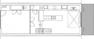 De achtergevel bestaat uit vier grote schuifluiken met regelbare, rechthoekige lamellen. Aan deze zijde bevindt zich de fotostudio, zodat regeling van daglicht hier extra belangrijk is. Bovendien zorgt een vide voor een maximale daglichttoetreding bij een open stand van de luiken. Daarnaast levert de vide een fraai ruimtelijk effect op.