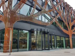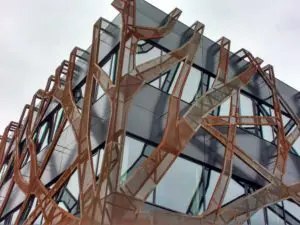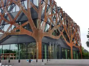 De gevels met hoge horizontale bandenramen bieden optimale indelingsvrijheid en een panoramisch uitzicht. Verbijzondering van de aanblik en wering van warmtelast vindt plaats middels een alzijdige stalen voorzetgevel met een organische boomstructuur aansluitend op de boombeplanting rondom. De bomen zijn gerealiseerd door Metadecor, dit in opdracht van de KlaassenGroep. Iedere boom is uniek ontworpen en opgedeeld in segmenten en met vaste verbindingen aan elkaar bevestigd. De bomen bestaan uit 500 unieke onderdelen. De voervelden zijn net als de thermische gevels generiek van aard en dragen bij aan een hoge mate van indelingsflexibiliteit.