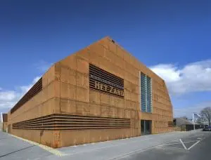 Architectonisch heeft het gebouw de uitstraling van de traditionele houten schuur. De gevelindeling is zo strak en gesloten mogelijk gehouden. De cortenstalen gevelbeplating, geplaatst in een strak grid van 1200 bij 1200 millimeter versterkt de opvallende abstracte uitstraling van het gebouw. De traditionele houten schuur is als uitgangspunt gehouden.