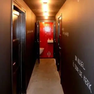 De materialisering is puur: een gietvloer van beton, een verhoogde vloer in eikenhout, een rvs aanrecht, houten deuren en wandbekleding, zoveel mogelijk van hergebruikt materiaal uit de kerk zelf afkomstig. Het kleurgebruik is ingetogen, de pure materiaalkleuren en veel wit met hier en daar een accent in rood. Op de entresol is in het slaapgedeelte veel zwart toegepast. Verder is daar een bad op een kiezeleiland en een bank. De entresol is van de rest gescheiden door een wand met deur geheel in hardglas. Het hoogste glaspaneel meet 4,85 meter tot de nok. Optisch loopt de ruimte dus door. Vanuit de badkuip kijk je zo de leefruimte in en vice versa. De entresol is niet verwarmd. ‘We zetten de deur gewoon open als we warmte van beneden willen.’ In verband met energiebesparing zijn aan de binnenzijde voorzetwanden geplaatst. Samen met schuimbeton op de vloer en hoogwaardige isolatie onder de dakpannen, is een Rc-waarde van 4,0 behaald.
