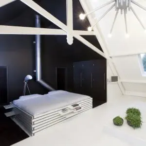 In het Achterhoekse dorp Haarlo heeft architect Ronald Olthof in een voormalig kerkje op creatieve en respectvolle wijze een bijzondere woon- en werkruimte gecreëerd voor zichzelf en zijn vriendin. Door toevoeging van de belendende vergaderkamer en enkele vensters is de donkere kerkzaal getransformeerd tot een lichte loft. Enige toevoeging is een rode trap naar de nieuwe entresol, die rondom is bekleed met de oude vloerdelen van de kerkzaal.