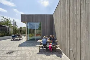 Om er voor te zorgen dat het gebouw in de toekomst een oogstlocatie wordt voor nieuwe circulaire gebouwen, is het kindcentrum zoveel mogelijk losmaakbaar gedetailleerd. Dat komt naar voren in het scheiden van constructie, gevel en inbouwpakket. Zo bestaat de gevel uit prefab HSB-elementen die vanuit de fabriek zo aan de constructie zijn bevestigd.