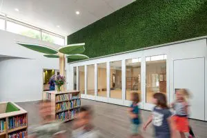 Het gebouw staat als een paviljoen in het groene landschap. Binnen en buiten gaan naadloos in elkaar over. Rondom een centraal ontmoetingsgebied – het hart van de school – zijn de onderwijsruimten gesitueerd. Door deze opzet wordt ontmoeting gestimuleerd en wordt het hart efficiënt bij het onderwijs betrokken. De kleurstelling van het interieur is rustig en natuurlijk en doet door de toegepaste kleuren en materialen Scandinavisch aan.