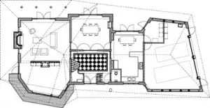 Kenmerkende dakvormen uit de lokale en traditionele architectuur zijn in het ontwerp voor het landhuis op een expressieve wijze gecombineerd tot een continue, dynamische dakvorm. De dakvorm geeft uitdrukking aan de thema’s gesloten–open en beschutting–uitzicht.