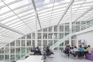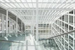 Architectenbureau cepezed heeft in samenwerking met Samyn and Partners architects & engineers het nieuwe onderkomen van Leefmilieu Brussel ontworpen. Het gebouw kenmerkt zich door een compact volume met getrapt teruglopende vloervelden onder een gebold en goeddeels transparant dak.