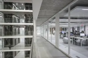 De kantoren bevinden zich vanaf de derde verdieping boven de publieksruimtes en zijn volledig flexibel indeelbaar. Een prominent gepositioneerde, doorgaande cascadetrap sluit aan op open galerijen.