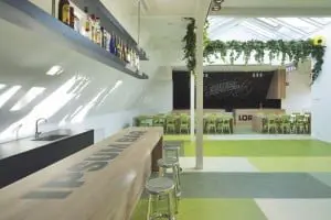 Zo is bijvoorbeeld de creatieve brainstormruimte in turquoise, een kleur die communicatie en creatief denken bevordert. Concentratieplekken zijn in geel gehouden, en het het blauw van de vergaderruimtes maakt productief. Voor de grote vergaderruimte is gekozen voor zwart/wit , neutraal en representatief.