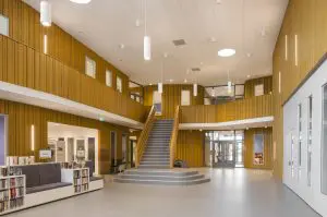 In beide scholen zijn leerpleinen opgenomen, die grenzen aan de aula en toegang geven tot de lokalen. Deze ruimtes hebben hun eigen kleur, inrichting en indeling: passend bij de betreffende school. ‘Onderwijsvisie en ontwerp gaan hier hand in hand’, vindt Slijkoort. ‘Wij kunnen in deze MFA het ‘onderwijs van de toekomst’ realiseren.’ ‘Door lokalen een eigen buitendeur te geven, kunnen ze ook door derden worden gebruikt’, vertelt Braspenning. ‘Zo kan het gebouw meebewegen met de tijd en het wisselende aantal kinderen.’ Drastische aanpassingen zijn ook mogelijk: alle binnenmuren kunnen probleemloos worden verwijderd. ‘Deze MFA kan de komende zestig jaar mee.’