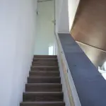 Alle binnenwanden beneden zijn opgebouwd in schoon metselwerk MBI betonsteen in een licht grijze kleur in combinatie met western red cedar plafond systeem. Het houten dak is geprefabriceerd inclusief akoestisch vilt en lattenplafond.