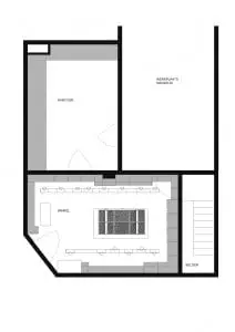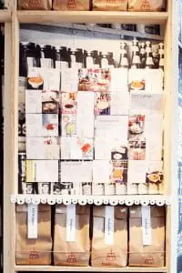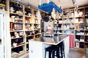 Langs de muren zijn houten kasten neergezet, zelfs het deurkozijn is weggewerkt in de kast. De muren zijn behangen met zwart/wit behang waarop afbeeldingen staan van winkelschappen uit de jaren 30. Het keukenblok staat in het midden van de winkel, het hart waar het allemaal om draait. Het interieurontwerp vormt een warme en passende achtergrond. Er worden DIY (do it yourself) pakketten verkocht waarmee je  in een handomdraai zelf taarten en koekjes kunt maken. De ingrediënten komen van lokale producenten uit de omgeving.
