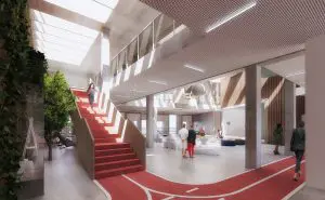 “We hebben een leeromgeving gecreëerd op basis van het architectonische concept van No Dead Ends, dat ideaal is voor interactie tussen leerlingen. In de centrale Learning Loop definiëren we verschillende focusniveaus, zodat leerlingen ruimtes kunnen vinden die overeenkomen met hun concentratievereisten” zegt Mikkel Hermann Sørensen, architect en partner van Christensen & Co Architects.