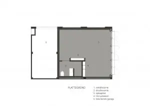 De oorspronkelijke garages die bij de jaren 30 woning horen bevinden zich op een zelfstandig perceel en hebben een toegangspad via een zijstraat. De garages zijn degelijk gebouwd maar hadden de nodige aanpassingen nodig om als verblijfsruimte te fungeren.