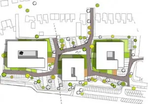 De drie gebouwen, waarvan de eerste al gerealiseerd is en de bouw van de andere twee binnenkort van start gaat, zijn twee lagen hoog waar ze aansluiten bij de bestaande bebouwing en drie lagen aan de spoorzijde. Op deze manier vormen de gebouwen een extra geluidsscherm voor de achterliggende woningen.