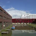 Hoe bevalt het? ‘Het huis past als een handschoen’ verzekert Petra Reijnhoudt, de vrouw van Jouke Post en trotse bewoonster van Recht op Wind, zoals ze het huis gedoopt hebben. ‘Vroeger stond hiernaast een molen, en om een windmolen te mogen exploiteren, moest een molenaar het zogenaamde windrecht krijgen. In ons huis speelt wind ook een belangrijke rol. We maken gebruik van louter natuurlijke ventilatie en voor de trek is de wind van belang. Daarom staat de kop van het huis, die we open kunnen zetten, op de wind.’ Post vult aan ‘Ik ben opgegroeid in Scheveningen, op een plek met weidse uitzichten, waar de seizoenen en het weer veel meer ervaarbaar waren dan in de huizen waar ik later woonde. Dit huis heb ik zo ontworpen dat je het buitenklimaat op een aangename en intensieve manier kunt ervaren. We horen de regen op het zinken dak, voelen de wind, wanneer we de ramen openen – en dat is zo vaak mogelijk – en zien de zon en de wolken aan alle kanten om ons heen.’ En af en toe vaart er een boot voorbij.