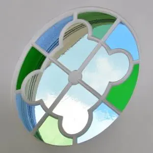 Ik heb een aansluiting voor een kachel laten maken, maar die hebben we nog niet nodig gehad’. De woning heeft een open plattegrond, met horizontaal en verticaal doorzichten. Op de verdieping lopen keuken, eet- en zithoek en entresol in elkaar over (7-9). De glazen deur naar de hal voorziet Petra van gedichten (10). Ook badkamer en slaapkamer vormen een doorgaand geheel, de groene kleur daar is afgeleid van een hergebruikt rond venster uit het ‘krotje’ (11-12). Op de begane grond is de garage en het atelier annex werk- en logeerruimte. Hier waren eerst
