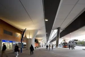 Terwijl de robuuste betonnen viaducten zo ingetogen mogelijk zijn vormgegeven, hebben Van Belkum en Sidor de ranke stalen perronoverkappingen juist een uiterst expressieve verschijningsvorm gegeven. Kolossale spanten strekken zich met een elegante, asymmetrische boog uit over vrijwel de hele lengte van de perrons. De eigenlijke perronoverkappingen hangen als V-vormige vleugels van glas, hout en staal aan weerszijden van deze ‘ruggengraten’. In het midden krullen deze vleugels een stukje omhoog om ruimte te bieden aan een licht- en luchtspleet. Die doorbreekt visueel de enorme lengte van de vleugels en markeert waar zich in het station de stijgpunten bevinden.