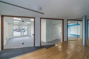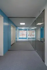 De ingebouwde wandkasten met zitnissen uit het vorige ontwerp zijn bewaard gebleven, evenals één van de houten platforms die de binnenruimtes met de hof verbonden. Het kantoor is bestemd voor de stichting. Naast de back office heeft het kantoor ook een front office waarin klanten worden ontvangen voor een kop koffie in de lobby en een gesprek in één van de drie glazen spreekkamers.