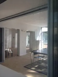 De uitbreiding – een multifunctionele ruimte voor wonen, slapen of werken – is geconcipieerd als een soort studio of tuinkamer, die de woonruimte verbindt met de tuin. Glasvlakken op diverse posities laten lichtinval vanuit alle kanten (noord, zuid, west en van boven) toe en bieden zicht op de groene omgeving. Het semitransparante glazen vlies aan de westzijde (Profilit) filtert het licht en vormt een groen decor.