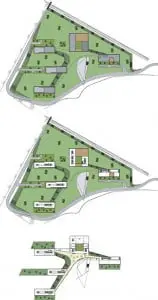 Tussen de ‘tentakels’ van dit entreegebied liggen, onder de grasheuvels, vijf parkeergarages voor 750 auto’s.