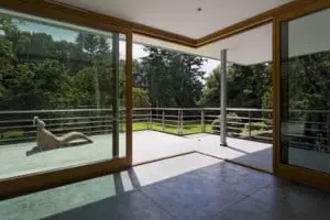 Twee verholen schuifwanden tussen keuken, eetkamer en zitkamer maken uiteenlopende ruimtelijke configuraties mogelijk, variërend van één grote open informele ruimte tot drie volledig separate vertrekken. Op vergelijkbare wijze kan met de diverse schuifpuien in de buitengevels de relatie tussen binnen- en buitenruimten worden bespeeld. Dit geldt in het bijzonder voor de schuifpuien op de hoeken die zodanig zijn gedetailleerd dat zij in open toestand – net als het fameuze hoekraam in het Rietveld Schröderhuis – een volledig stijl- en kolomvrije (hoek-)doorgang opleveren.