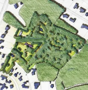 Uitgangspunt van de opdrachtgevers, een gezin met vier kinderen, is om het ooit afgesplitste deel van het landgoed te voorzien van een nieuw landhuis dat als ‘drager’ van het terrein fungeert. Niet alleen als architectonisch ankerpunt voor de nog in het terrein aanwezige boomgaard, moestuin, bomenlaan en bosvijver maar ook als waarborg voor toekomstig onderhoud en beheer. Omdat het een in alle opzichten gevoelige bouwlocatie betreft, gaat men aanvankelijk op voor zo min mogelijk aanstootgevende retro-architectuur. Het hieruit resulterende ontwerpvoorstel voor een pseudo-klassiek landhuis met strikt symmetrische plattegrond stuit echter dermate tegen de borst, dat naarstig op zoek wordt gegaan naar een nieuwe architect van moderne signatuur. Een architect die zich, in tegenstelling tot zijn voorganger, niet tot louter beproefde oplossingen en stijlmiddelen beperkt maar zijn onmiskenbaar eigentijdse ingrepen en toevoegingen wel op respectvolle wijze in de bestaande omgeving integreert.