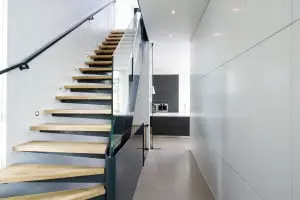 Deze eisen hebben geleid tot een deels verdiepte ligging van het huis. Hierdoor zijn verschillende split levels ontstaan. De begane grondvloer ligt deels 55cm boven het maaiveld en deels 125cm. De vloeren en wanden zijn letterlijk om alle woonruimten heen gevouwen. Alle ruimten hebben uitzicht op het water en omliggende groen.