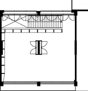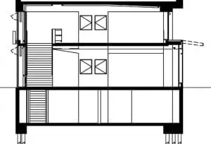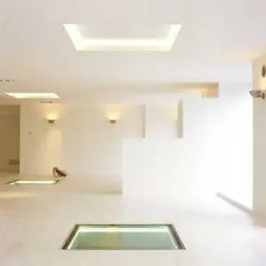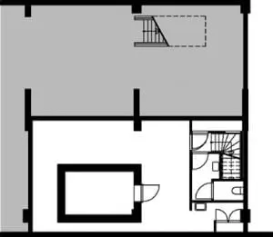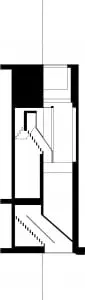 Beeldbepalend element is de achterwand in de vide waarvoor Korth & Tielens een alternatieve vorm van vitrage hebben bedacht in de vorm van lichtdoorlatende aluminium luiken. Deze worden zowel door dag- als door kunstlicht verlicht.