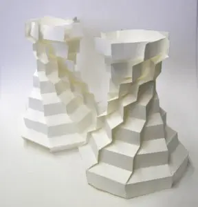 Jun Mitani is niet alleen professor in computertechnologie aan de Universiteit van Tsukuba in Japan, hij is ook een ware origamikunstenaar. Met behulp van algoritmes en computersoftware ontwerpt hij de 3D-origamivormen. Na het ontwerpen drukt hij de vouwlijnen voor op papier en gaat aan het werk.