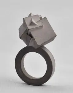 De collectie van Mareike Kanafani bestaat uit ringen en broches van beton. De ringen van beton zijn gebaseerd op ringen met enorme edelstenen. Door het materiaal beton hebben ze een raakvlak met architectuur. De broches hebben ovale vormen en zijn mooi in hun eenvoud. Met een paar lijnen en kleur is dit een bijzonder sieraad.